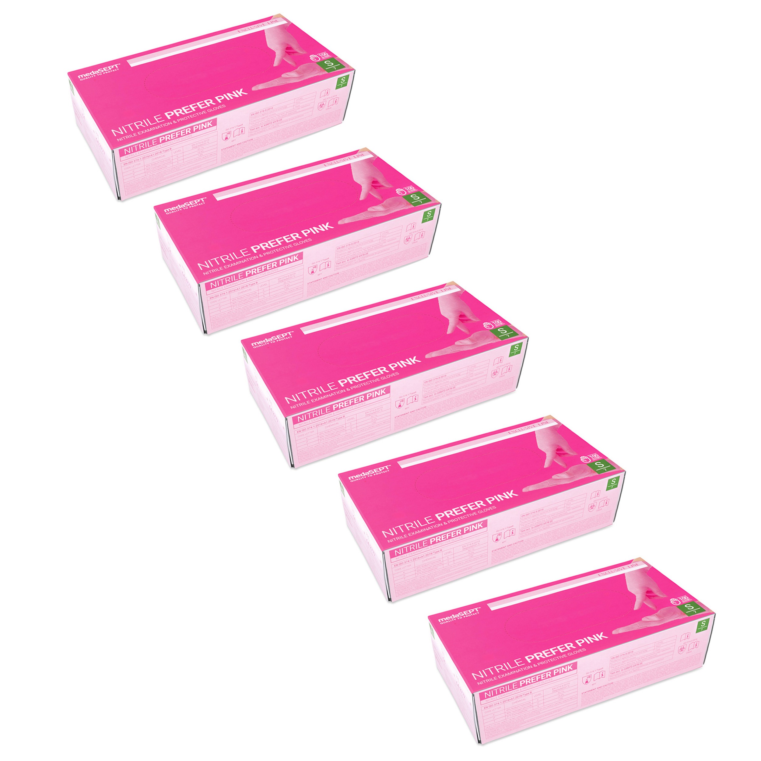 medaSEPT NITRILE PREFER PINK Rękawiczki diagnostyczne, nitrylowe bezpudrowe różowe Kat. III rozmiar S 100szt x 5 opakowań