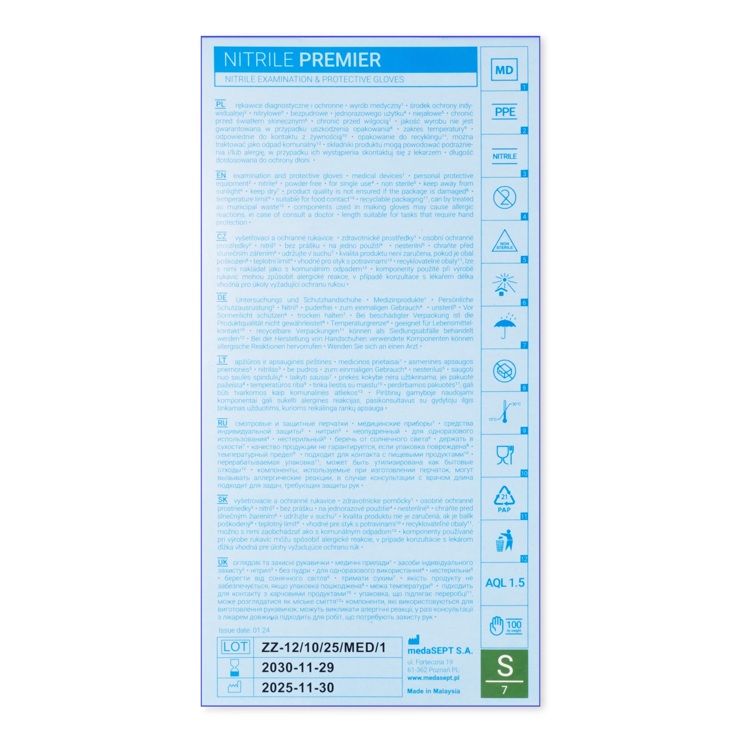 medaSEPT NITRILE PREMIER S rękawice diagnostyczne, nitrylowe bezpudrowe, niebieskie 100 szt