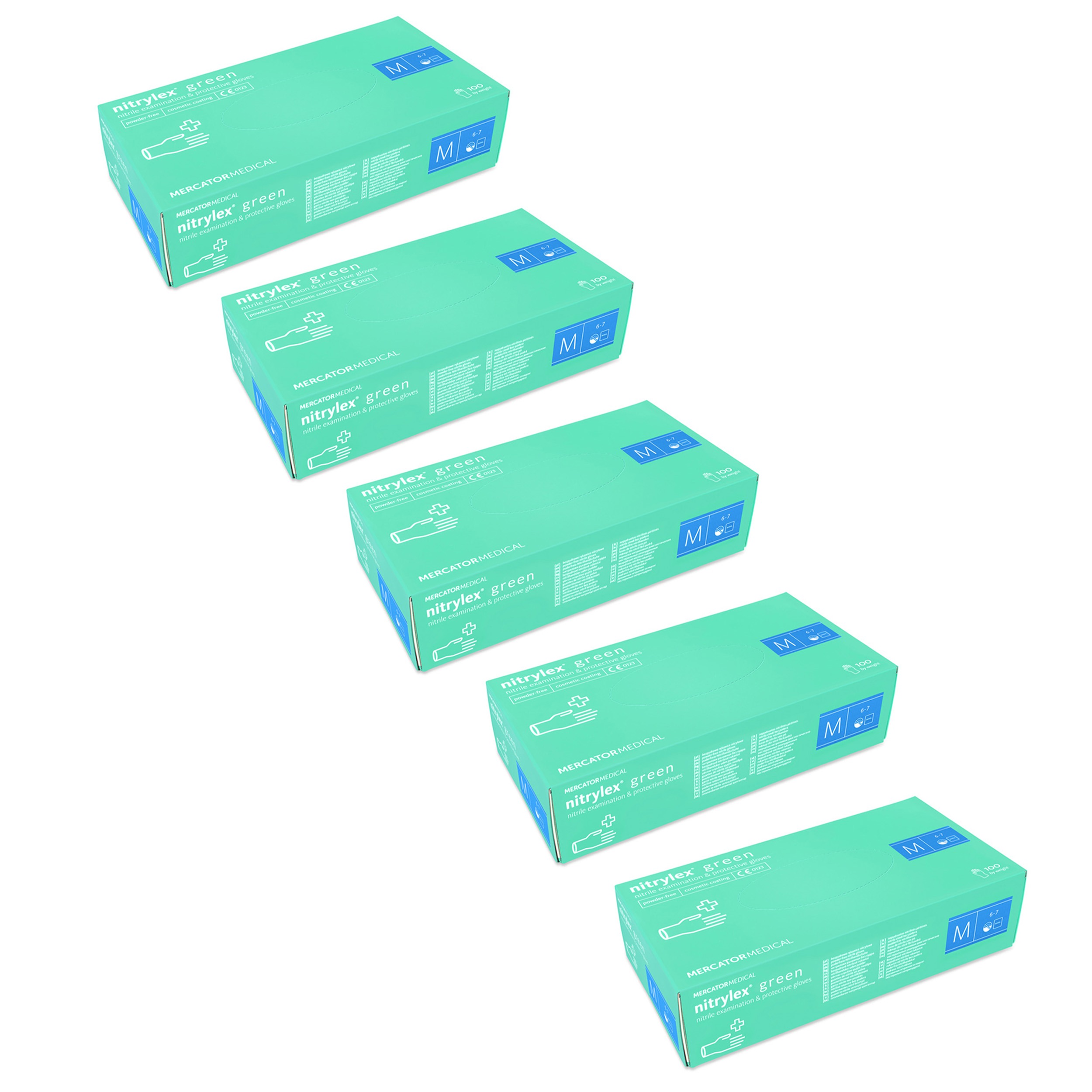 Rękawiczki nitrylowe zielone bezpudrowe rozmiar M 100 sztuk x 5 opakowań